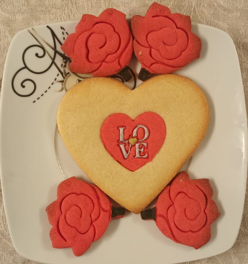 Buttergebäck Herz (Love) mit 4 Rosen zum Valentinstag
