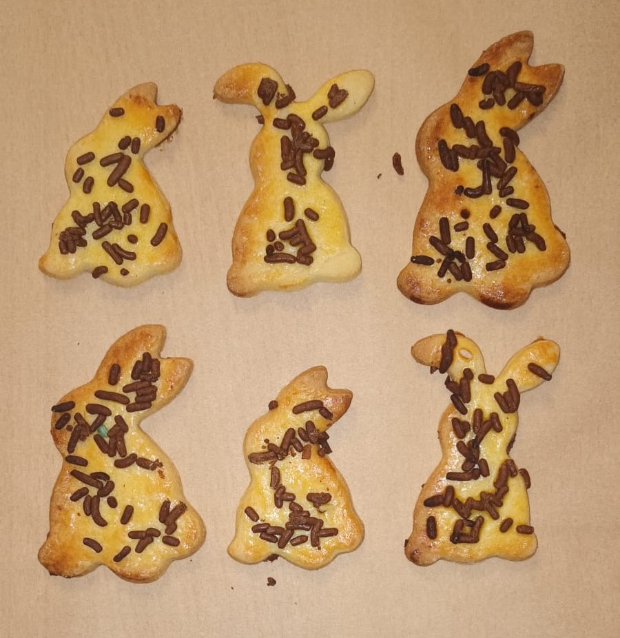 Frisches Selbstgebackenes Buttergebäck mit Schoko Streusel (Hasen)