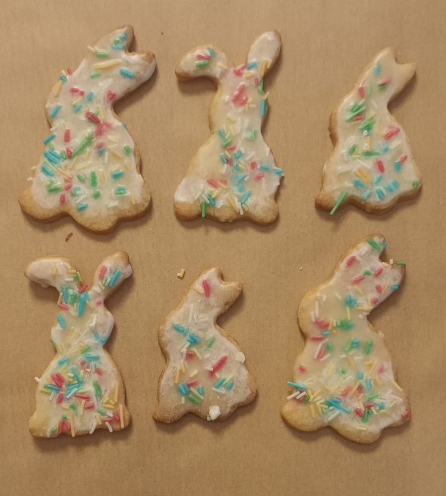 Frisches Selbstgebackenes Buttergebäck mit Zitronenglasur und Streusel (Hasen)